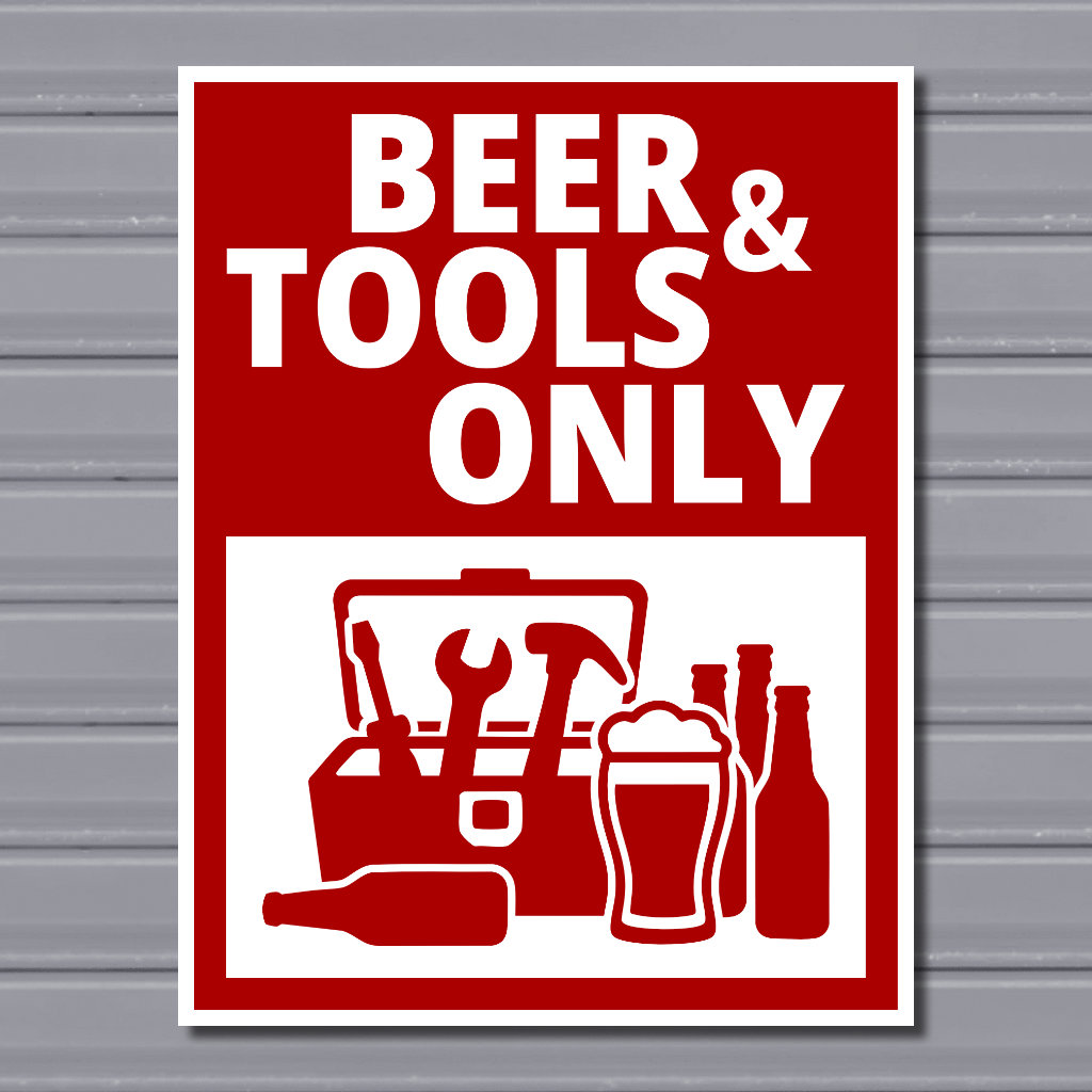 This portrait novelty sign, measuring 23x30cm, proudly displays the bold message “Beer & Tools Only” alongside a toolbox and single beer glass graphic. Designed for those who take their workshop time seriously, it sets the tone for a space where tools get used, projects get built, and a cold beer is always welcome.