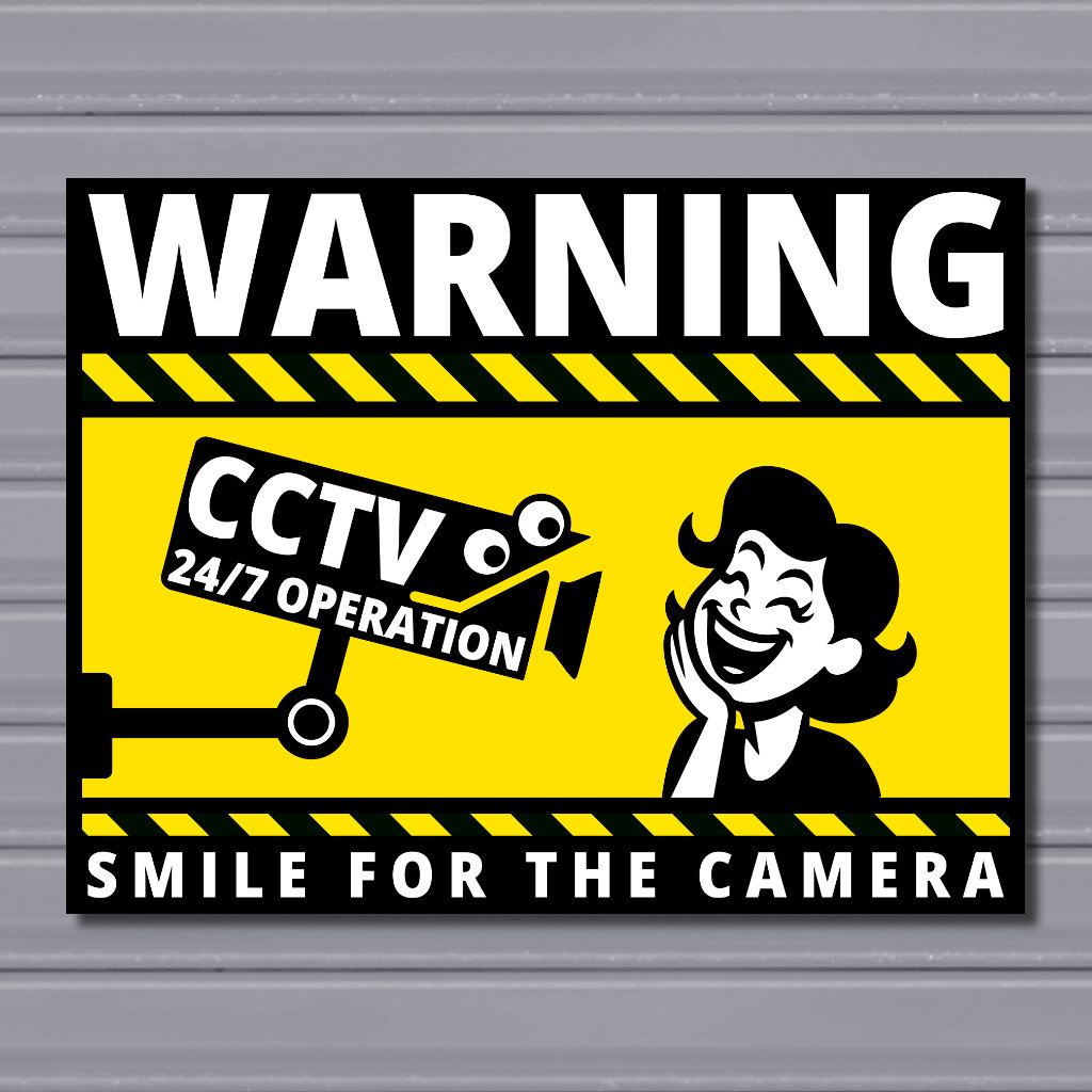This landscape warning safety sign, measuring 30x23cm, features a clean black, yellow, and white colour combination that delivers clear CCTV messaging with a professional finish. The “CCTV Smile for the Camera” text ensures immediate understanding of active surveillance.