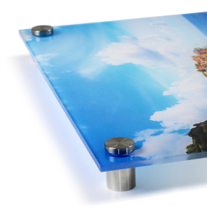 Important: Stainless steel spacers are not shown in the live image preview. They are typically positioned approximately 2 cm from the corresponding acrylic edges, measured from their center. Please account for this when uploading your image or artwork.