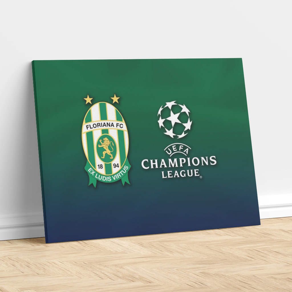 Celebrate Maltese football pride and European ambition with Floriana F.C. – UEFA Champions League Edition—a Limited Edition ready-made canvas print featuring the club’s historic crest alongside the prestigious UEFA Champions League emblem. Set on a deep green-to-navy gradient background, this artwork embodies the strength, heritage, and determination of one of Malta’s oldest and most successful football clubs.