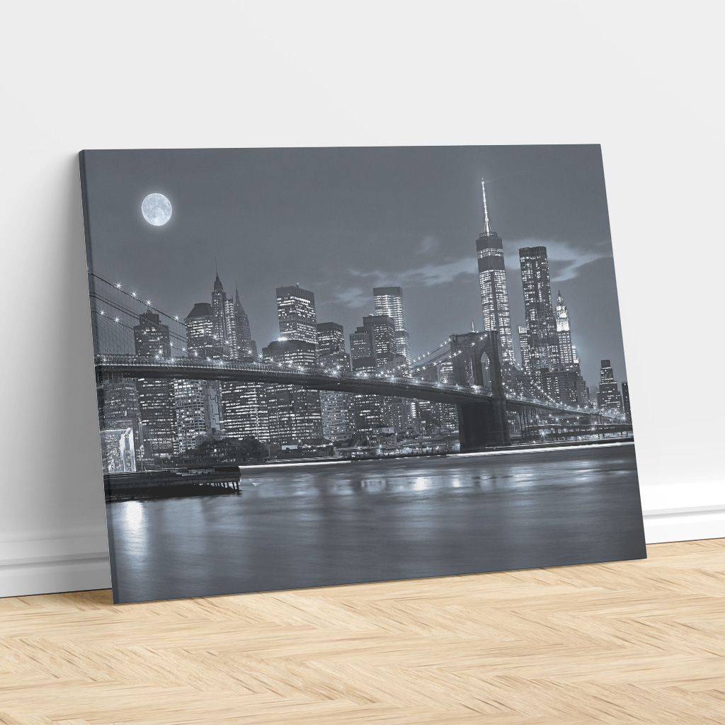 The Midnight Skyline – Brooklyn Bridge, New York City canvas embodies the sophistication and energy of one of the world’s most iconic skylines. With its sleek monochrome tones and glowing city lights, this artwork adds a touch of cosmopolitan elegance and timeless charm to any room.