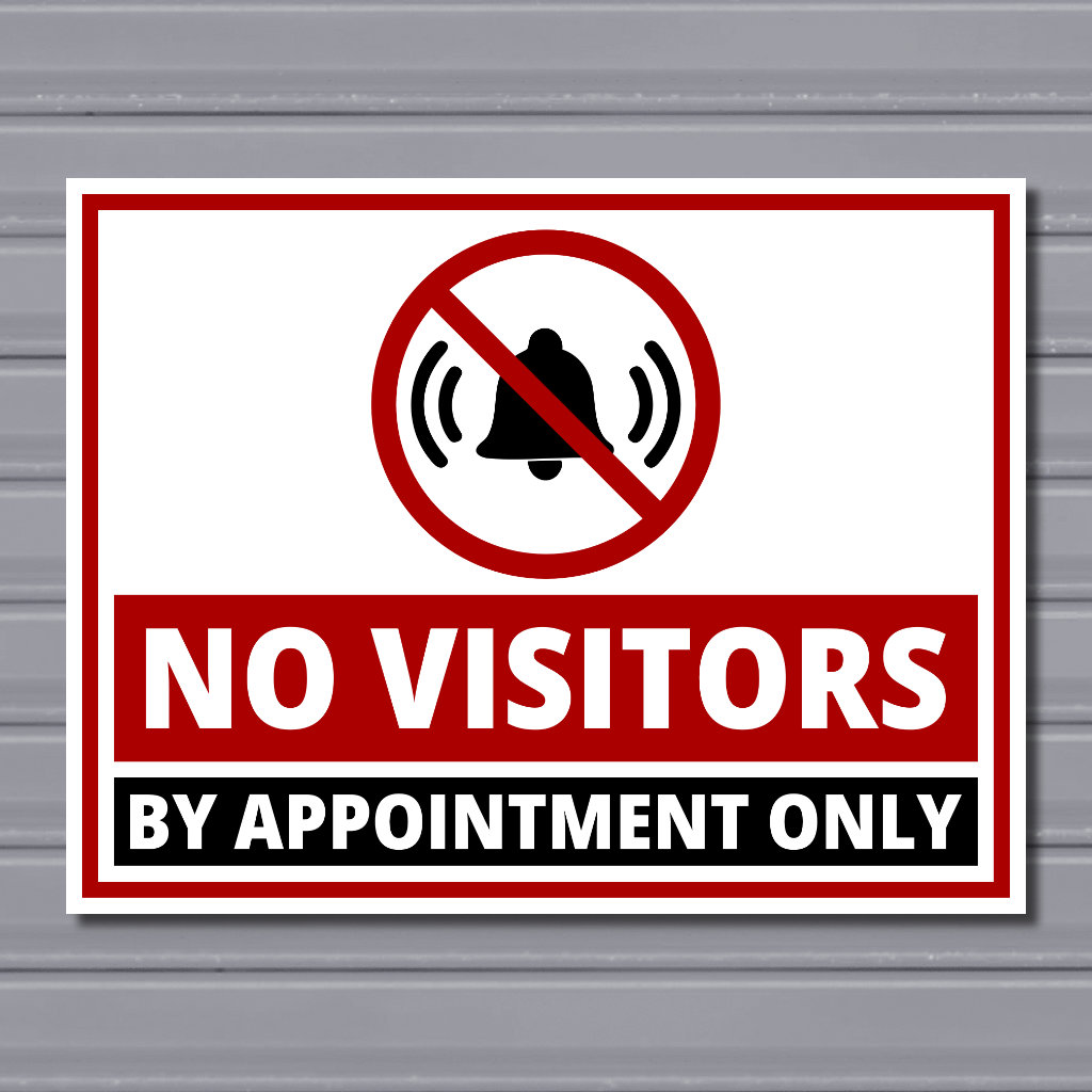 No Visitors – By Appointment Only Safety Sign (Bell Prohibited, Red & Black Text Panels)