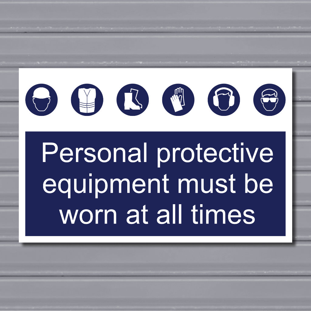 This landscape site safety sign measures 30x19cm and clearly displays the instruction “Personal protective equipment must be worn at all times.” Featuring clear, universally recognised PPE symbols, it provides immediate visual guidance and reinforces strict safety requirements across active work areas.