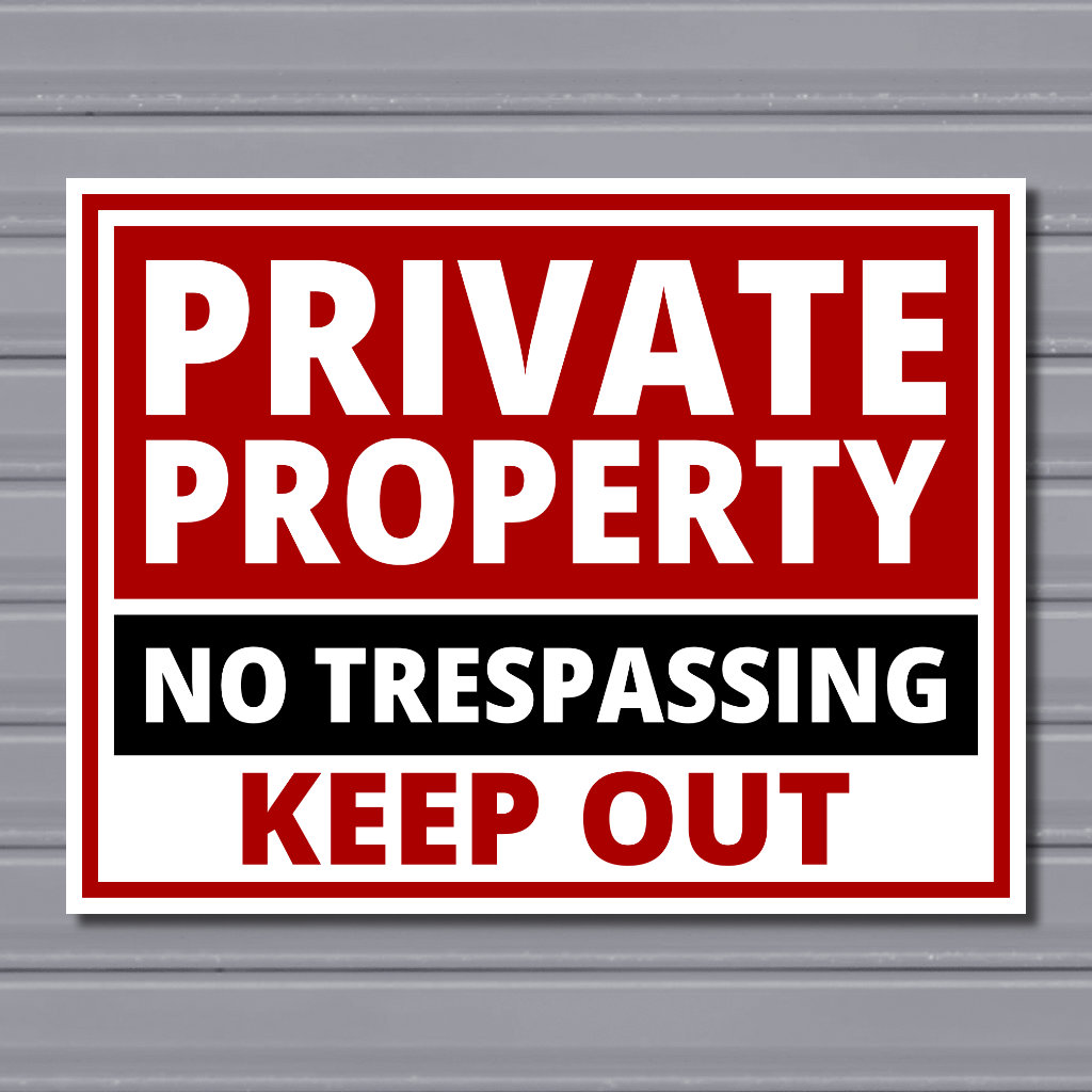 This landscape private property safety sign, measuring 30x23cm, delivers a strong text-based warning with the message “Private Property – No Trespassing – Keep Out.” The bold wording and high-contrast layout ensure the restriction is clearly understood at a glance.