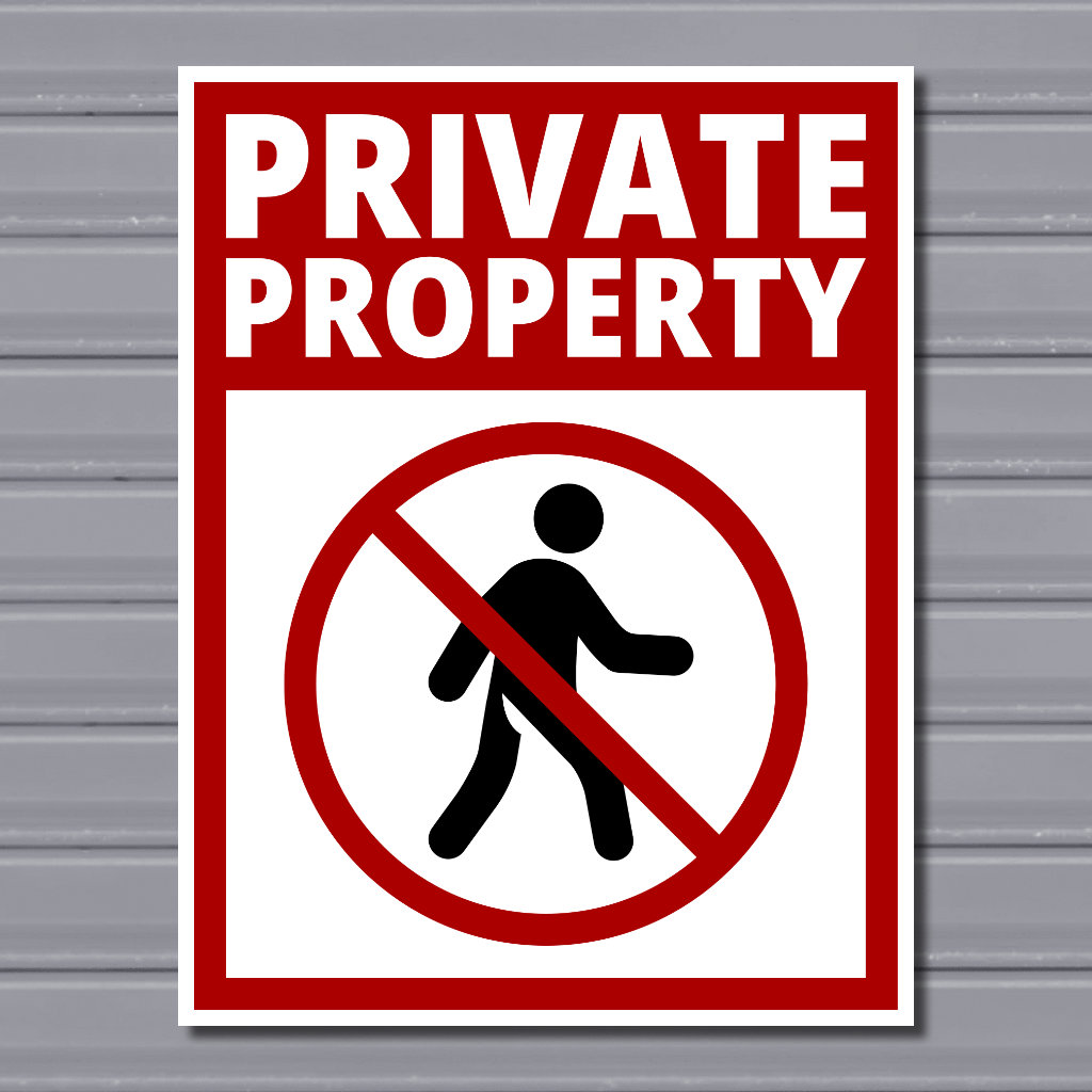 Private Property – No Trespassing Safety Sign (Walking Person Icon, Portrait)